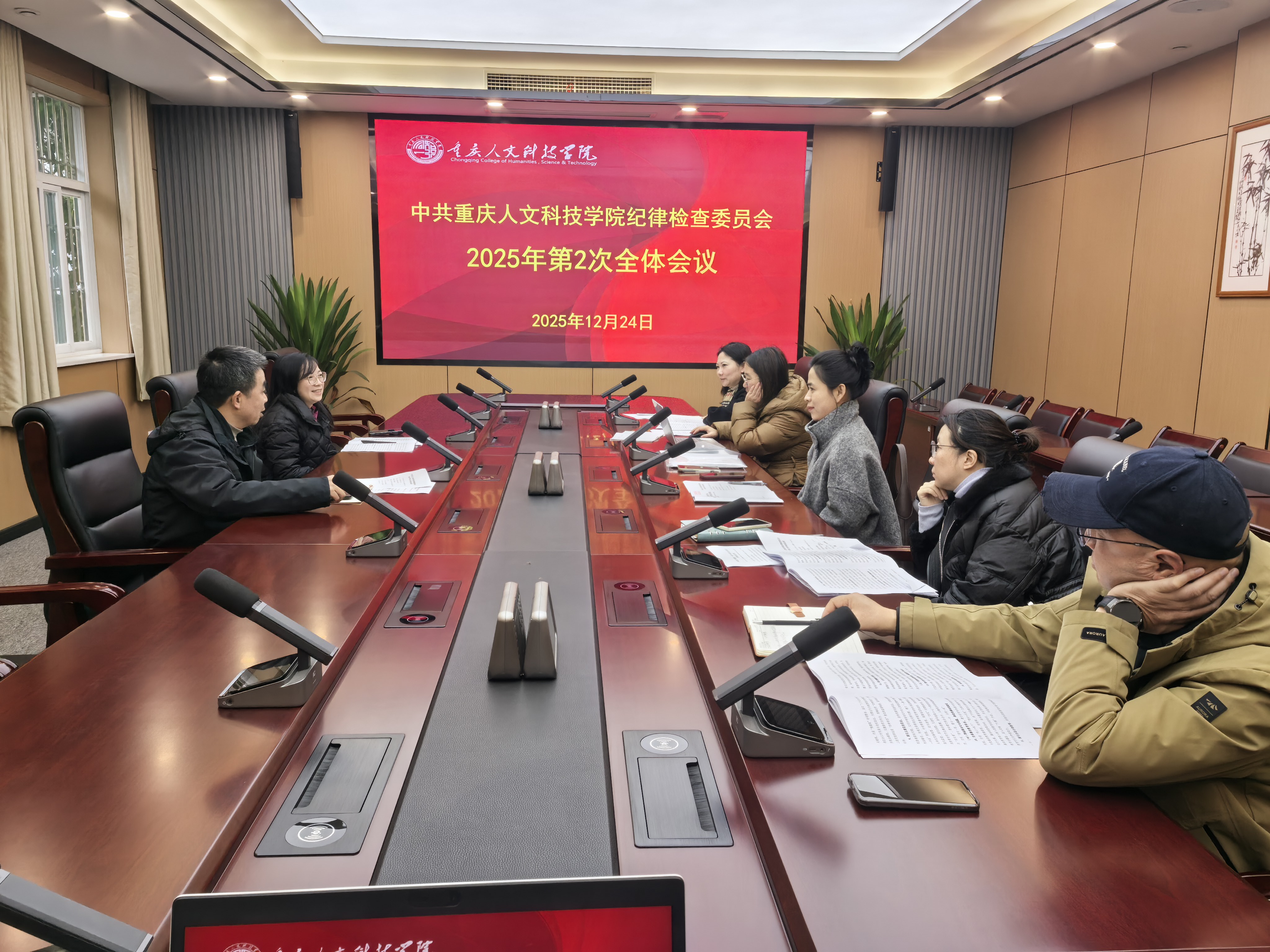 12月24日,中共重庆人文科技学院纪律检查委员会在怀远楼一会议室召开2025年第2次全体会议,分管校领导、纪委办公室、监察处负责人、全体纪委委员参加会议。会议由党委副书记舒卫华同志主持。