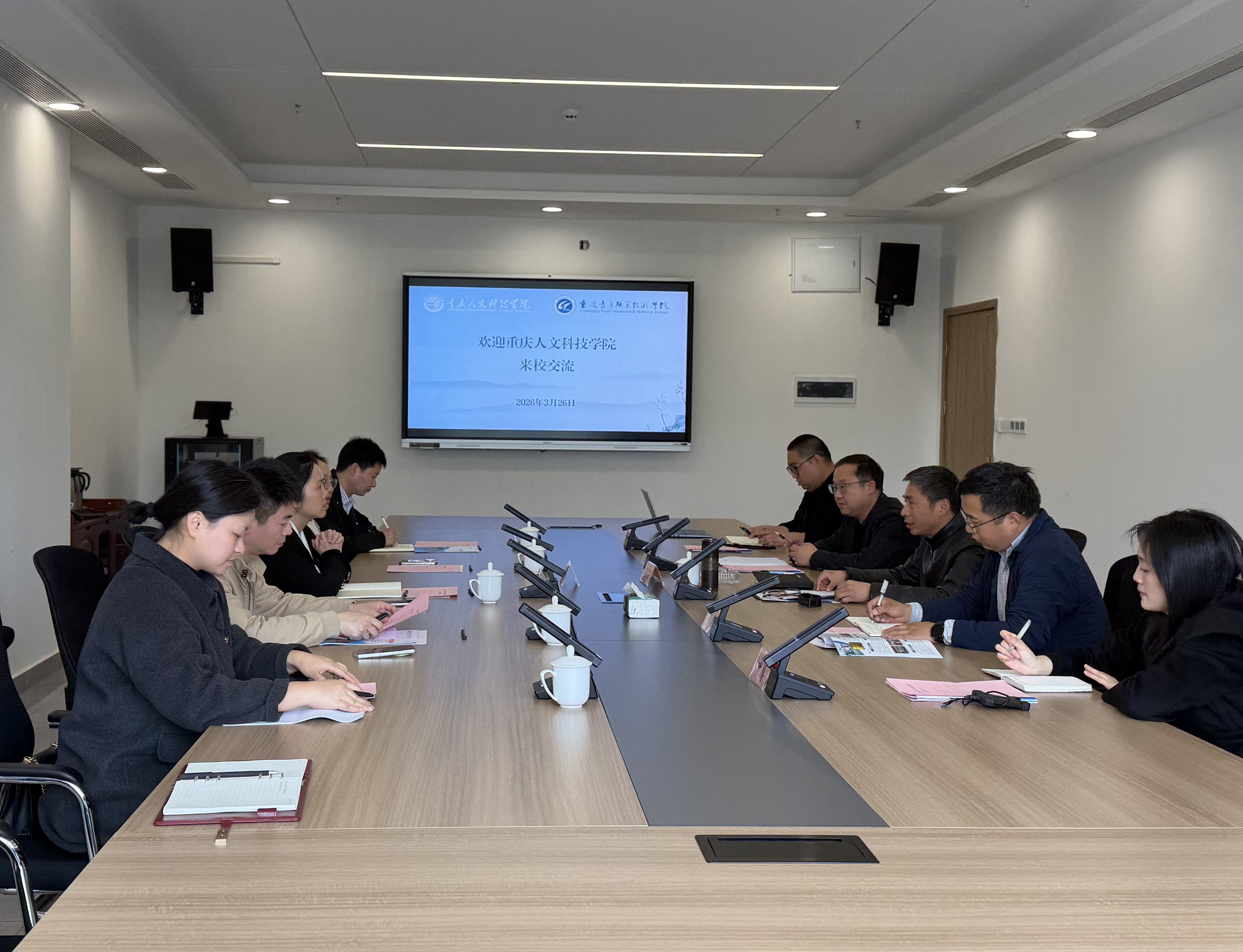 为深化校际合作、推动校友会建设提质增效,加强专本贯通项目协同育人,3月26日下午,校长助理吴静一行赴重庆青年职业技术学院学习交流。重庆青年职业技术学院党委委员、副院长李柯及相关职能部门负责人热情接待了我校一行,学习交流座谈会由招生就业处处长颜冀军主持。