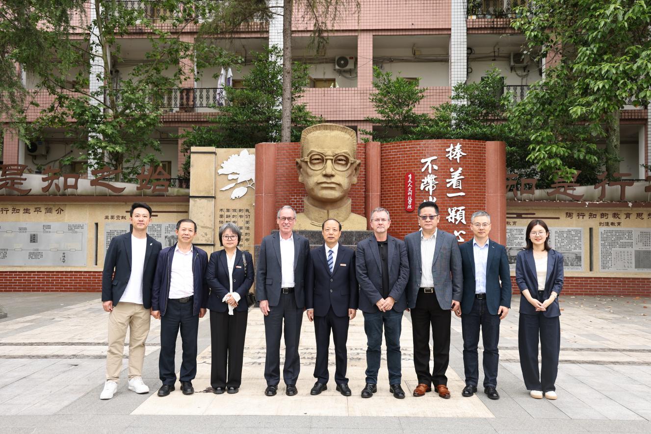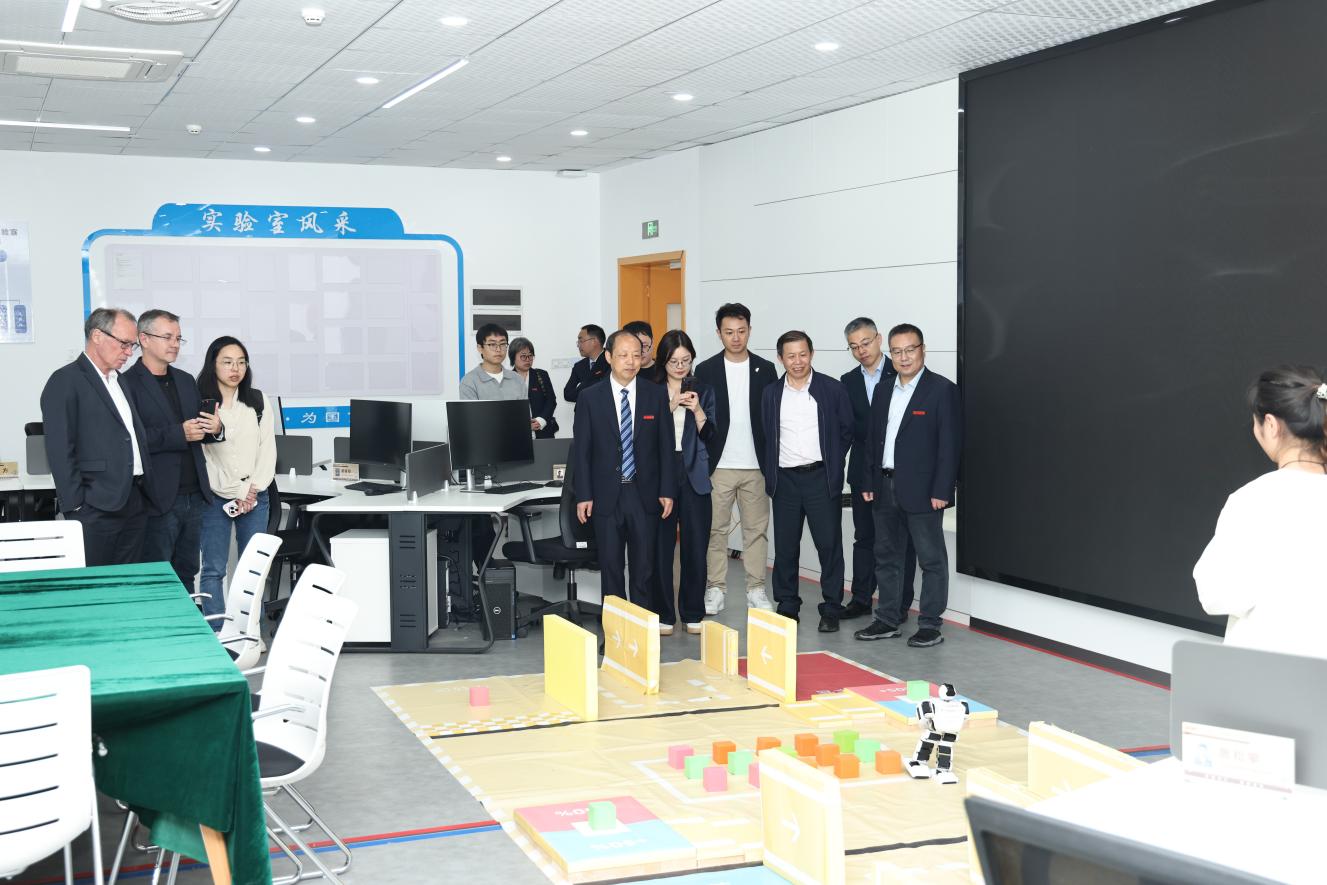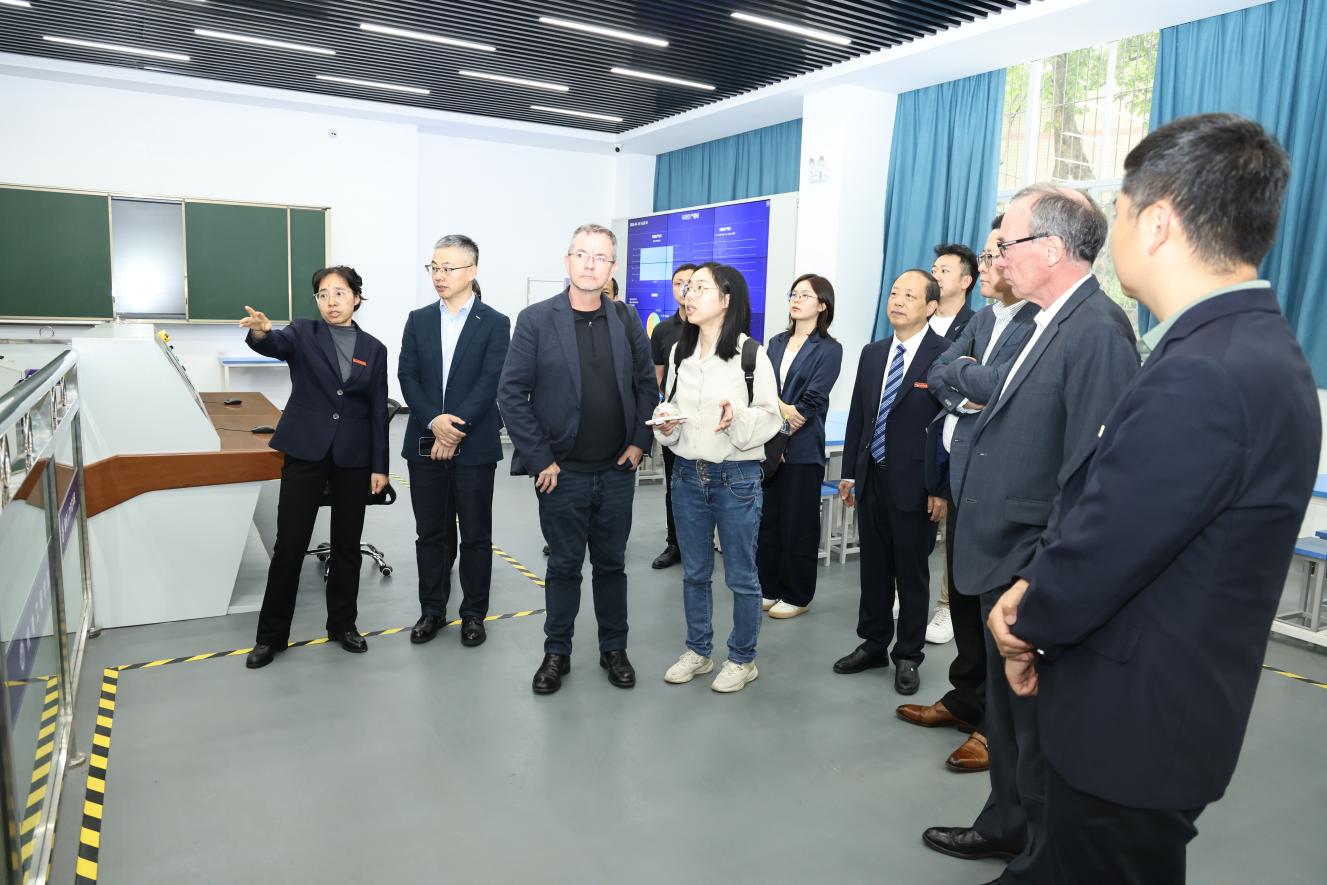 在学校相关负责人陪同下,澳方代表团先后前往行知广场合影留念,实地走访格致楼机电工程学院实验实训室、卓立楼人工智能与信息安全学院实验实训室,近距离参观我校实训硬件设施、实践教学体系与专业建设成果,全面了解工科、人工智能等重点学科办学条件与人才培养模式。