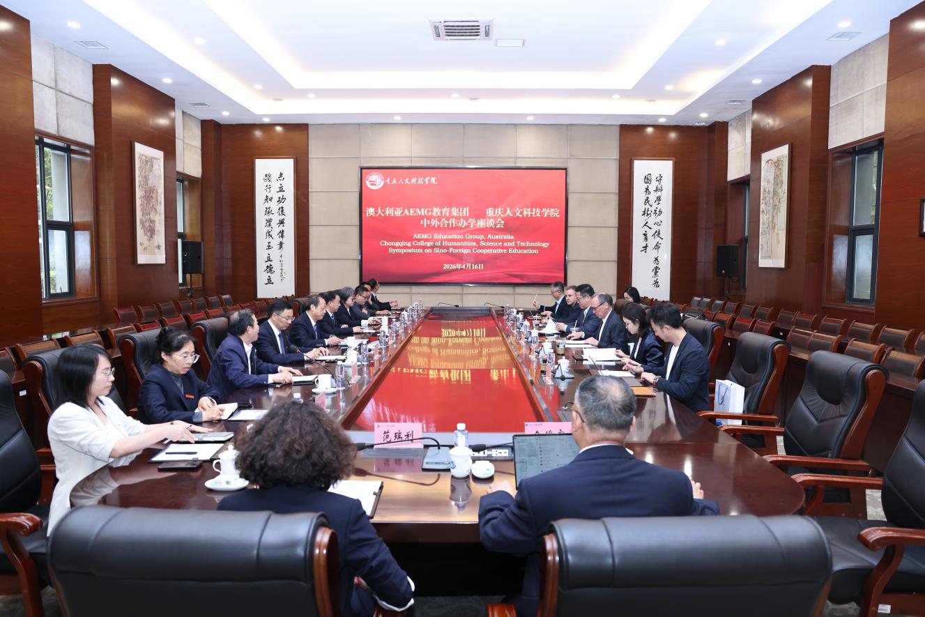 为持续拓展国际化办学路径,深化中外教育资源融合,推进中外合作办学高质量发展,4月16日下午,澳大利亚 AEMG 教育集团董事长李新庆携代表团一行到访我校开展考察交流。座谈会在学校会议中心顺利举行,校长周光明、党委书记彭体春、副董事长及执行校长曹勇等校领导,各相关二级学院负责人、职能部门负责人参会。会议由国际合作与交流处处长、国际学院院长刘承宇主持。