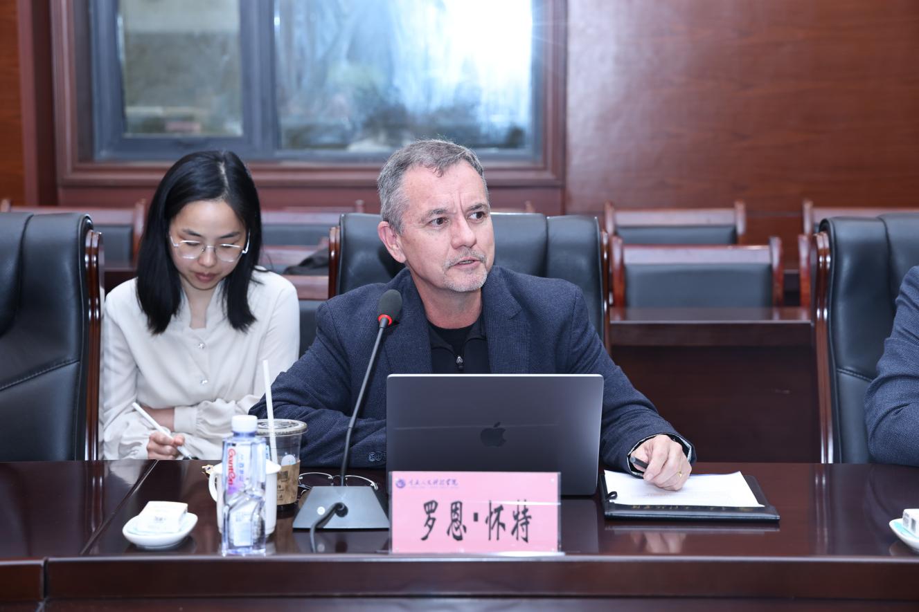 交流环节中,AEMG 教育集团董事长李新庆详细介绍了集团发展概况、中澳国际合作项目布局、海外院校资源优势,并结合我校学科特色与发展需求,针对性阐述中澳合作办学整体设想。詹姆斯库克大学、AIFE 院校代表依次发言,介绍院校办学特色与国际合作经验。